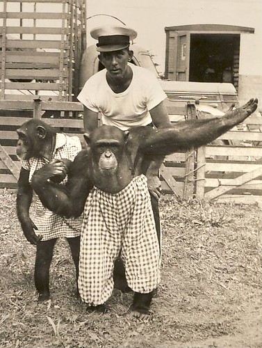 As they arrived they were greeted by Joe Lewis proprietor of "Kong the Killer Gorilla" actually a big chimp, this picture taken several years later after being demoted to Anthropoid Ape, due no doubt to some heat.