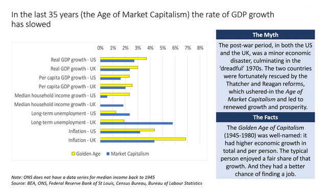 Of course there was higher growth in the post-war period. You had several years of pent-up technological growth to exploit and there were also years where we could export the bad jobs. Neither of these factors has anything to do with the economic policies of the era.
